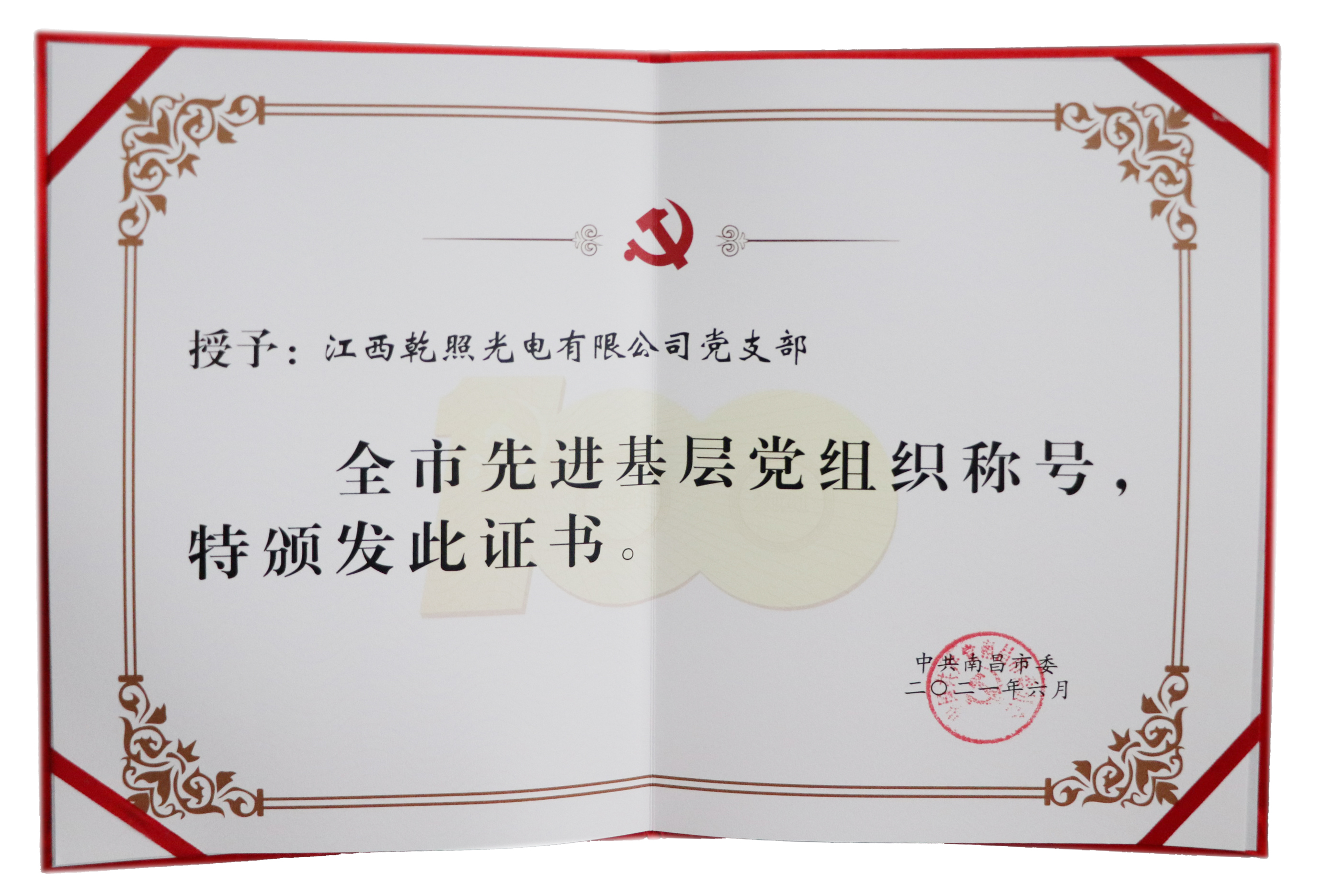 江西乾照光電黨支部必將珍惜榮譽,不忘初“芯”,一往無前!繼續(xù)堅持以習(xí)近平新時代中國特色社會主義思想為指導(dǎo),全面貫徹落實新時代黨的建設(shè)總要求,牢固樹立“黨建標(biāo)桿”意識,充分發(fā)揮基層黨組織戰(zhàn)斗堡壘作用,為公司高質(zhì)量發(fā)展提供堅強的政治保障,以更優(yōu)異的成績獻禮建黨100周年。