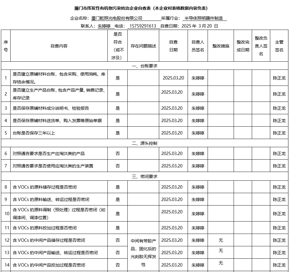 廈門乾照光電股份有限公司2024年度危險廢物產生、轉移、貯存情況公示