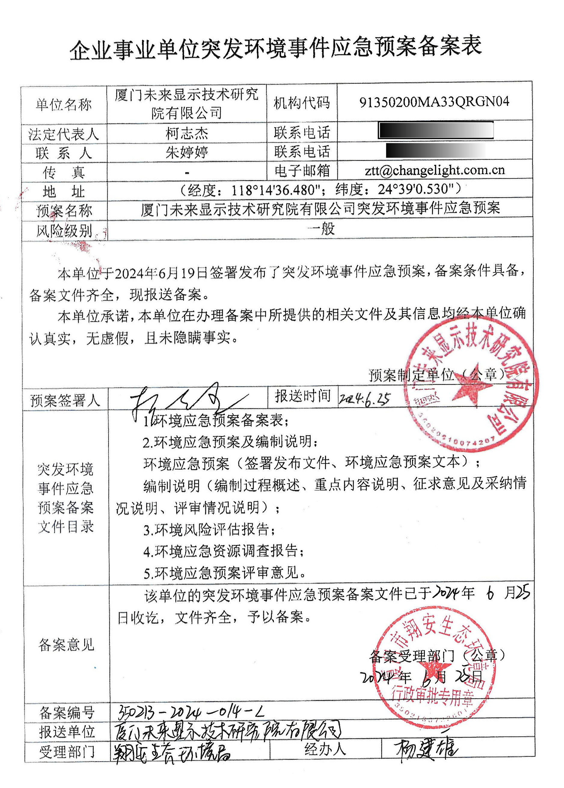 附件:廈門未來顯示技術研究院有限公司突發(fā)環(huán)境事件應急預案