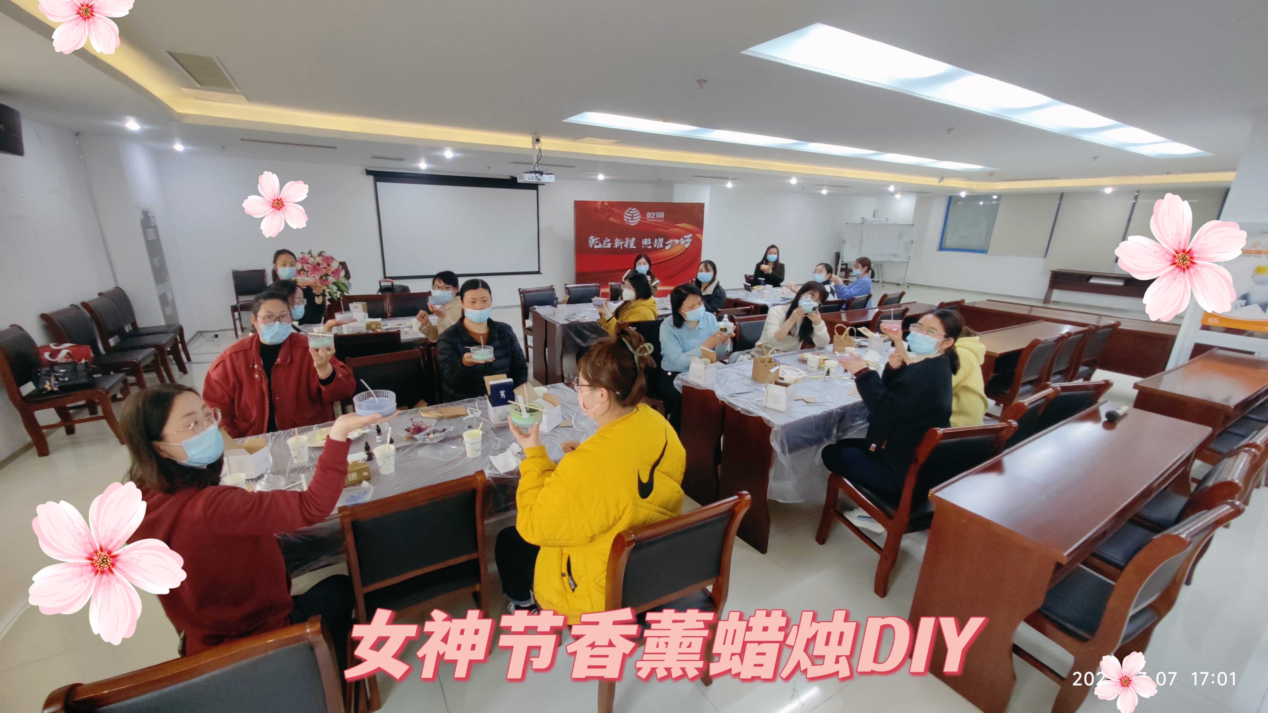 揚州乾照用浪漫的粉色康乃馨和洗護套裝,給女員工送去節日的寵愛。同時,舉辦了主題為“香”遇美好時光的香薰蠟燭DIY活動,活動現場芳香四溢,連空氣都充滿了節日的儀式感。大家發揮創造力,巧妙構思與設計,將自己對美的理解與領悟融入到香薰蠟燭制作中。